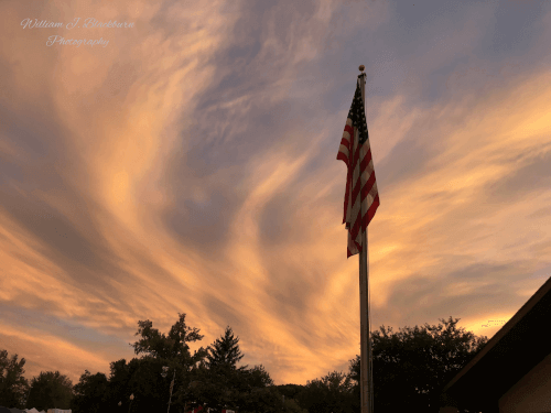 | Description: | I was at the Romulus Pumpkin festival on the evening this photo was taken. I noticed the swirling of the clouds and thought of how beautiful they were. Being close to the local post office gave me the idea to include their American Flag in the photo. |